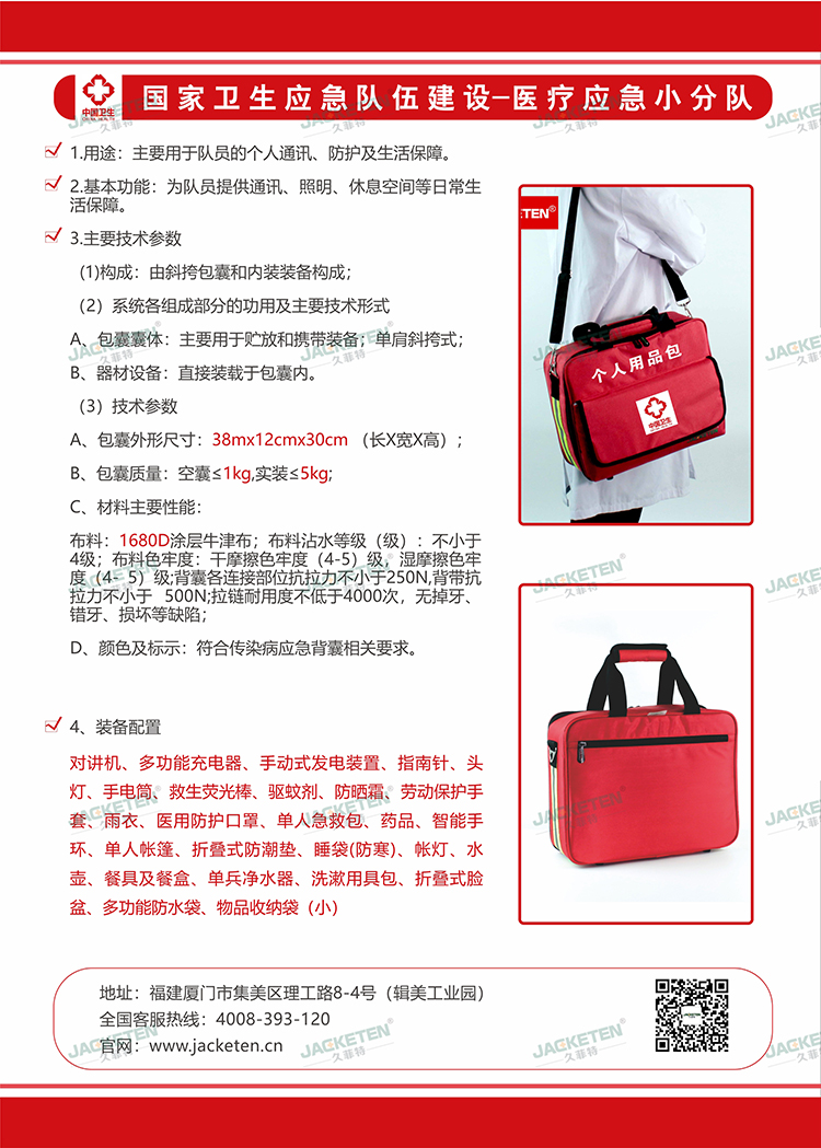 主營產(chǎn)品: 急救背囊,應(yīng)急救援包,急救箱包廠家