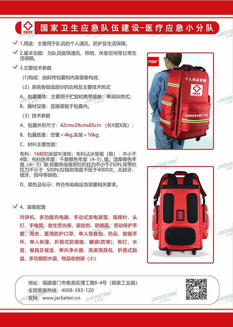 主營(yíng)產(chǎn)品: 急救背囊,應(yīng)急救援包,急救箱包廠家